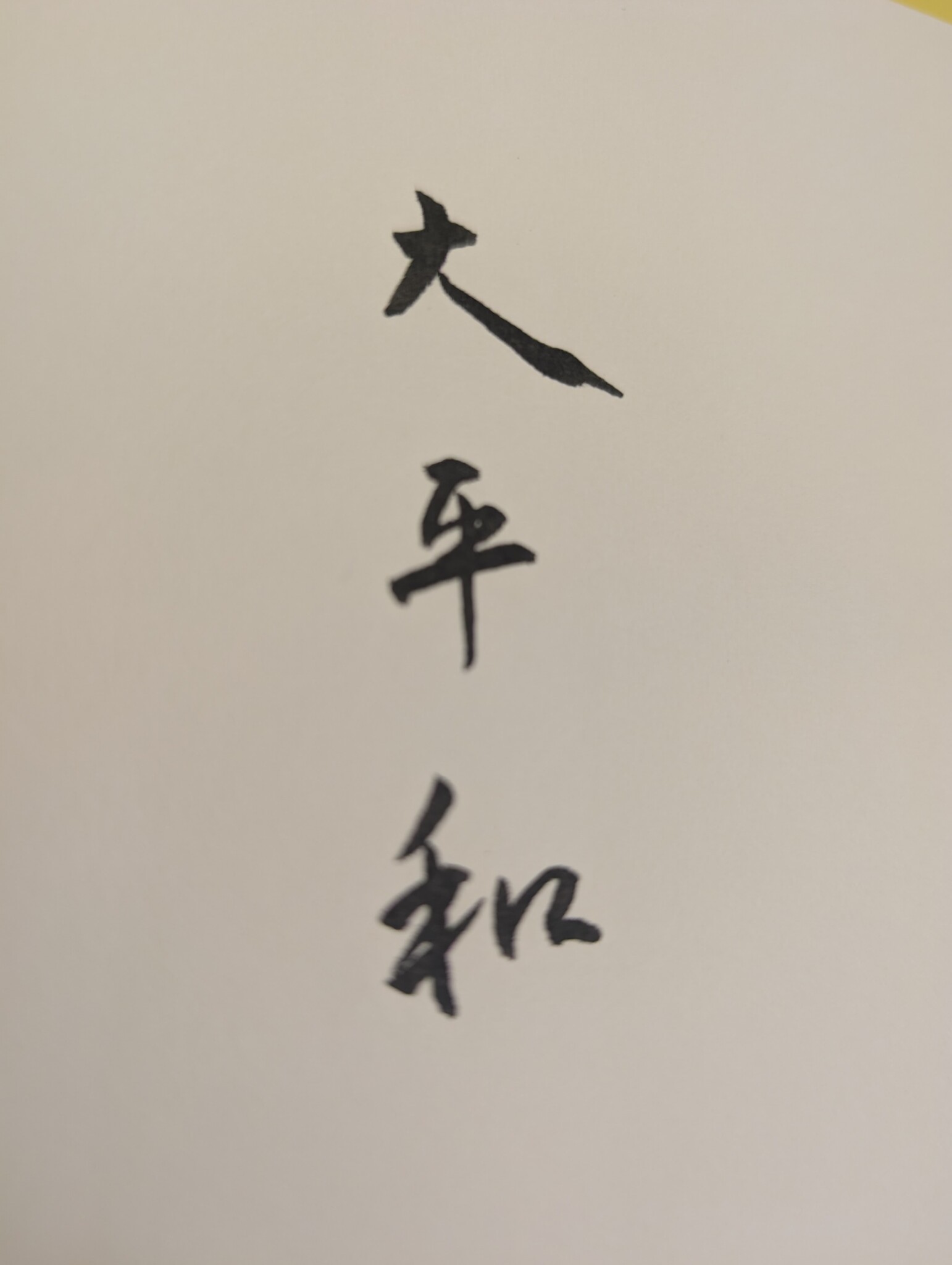 Anlässlich einer Lesung in Berlin hat Kazuaki Tanahashi uns exklusiv vier Exemplare seines Buchs „Painting Peace – Kunst in Zeiten globaler Krisen“ je mit einer kleinen Kalligrafie für „Großer Frieden“ versehen (Kalligraphien können pro Exemplar optisch leicht abweichen). Und wir möchten dieses besondere Geschenk mit euch teilen: Zum Sonderpreis von je 45 Euro könnt ihr eines der vier Exemplare bis zum 15.12. erwerben. (Versand nach Reihenfolge des Bestelleingangs – first come, first served).